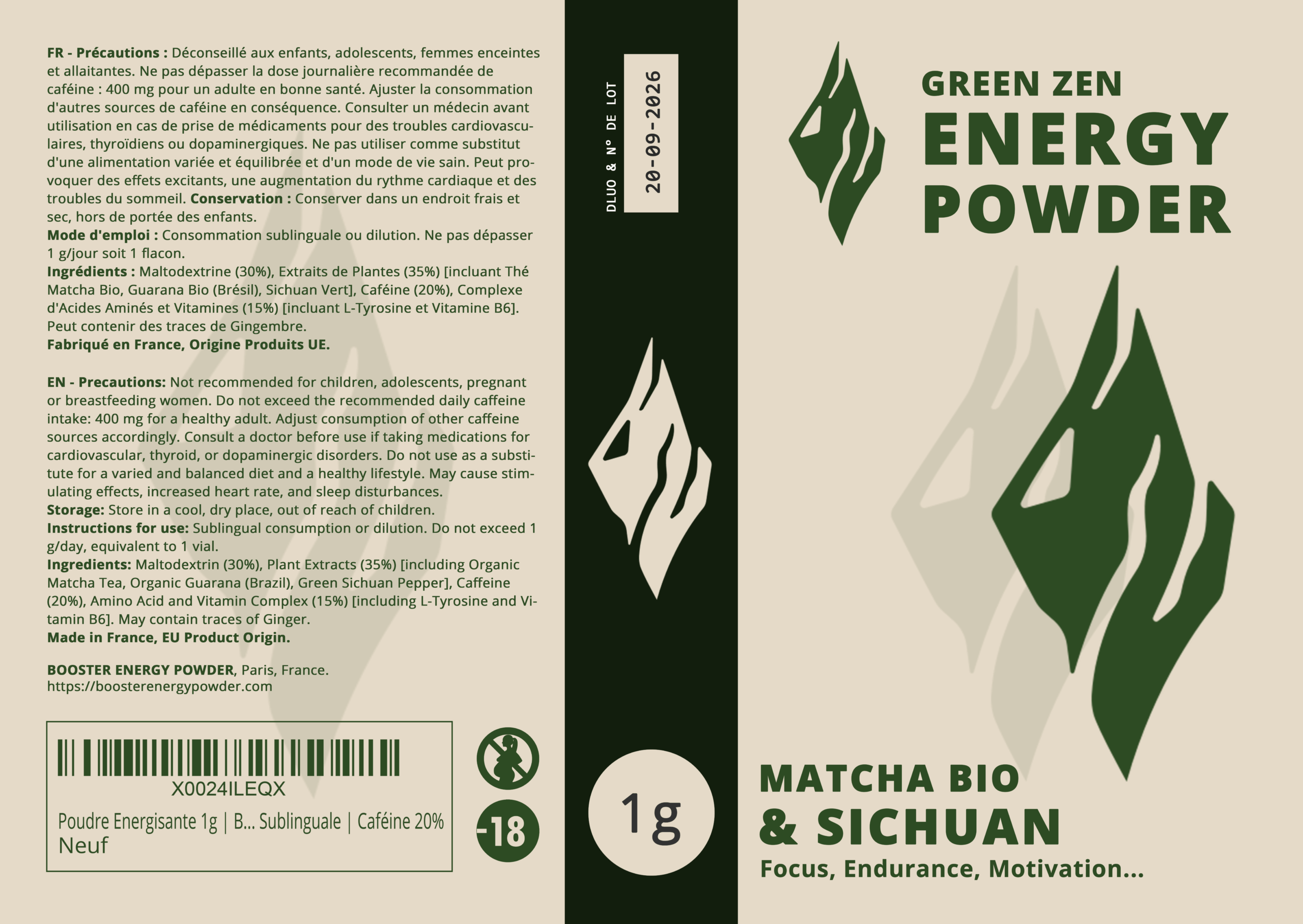 ![[Déstockage] GreenZen Energy Powder – Matcha Bio & Sichuan (Flacon 1g) – Image 4](https://shop.boosterenergypowder.com/wp-content/uploads/2025/05/Poudre-Energisante-1g-infographie-1.png)