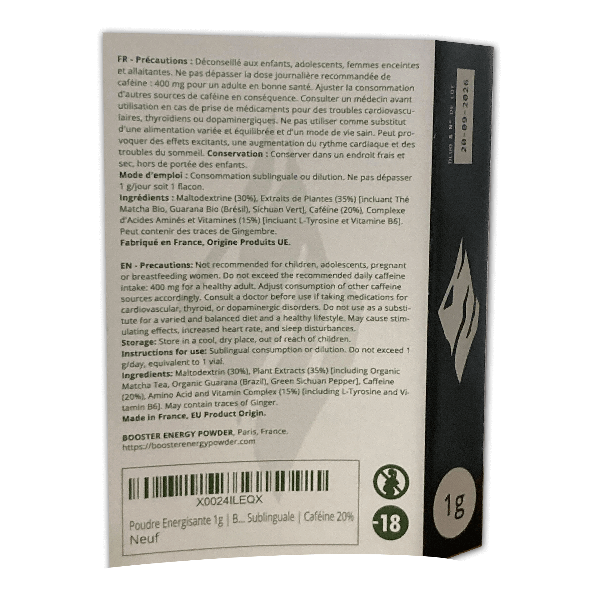 ![[Déstockage] GreenZen Energy Powder – Matcha Bio & Sichuan (Flacon 1g) – Image 3](https://shop.boosterenergypowder.com/wp-content/uploads/2025/05/02_Poudre-Energisante-1g-infographie_photo_produit_verso.png)